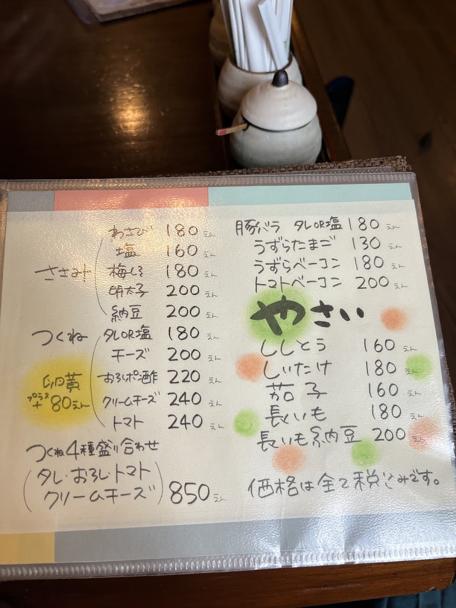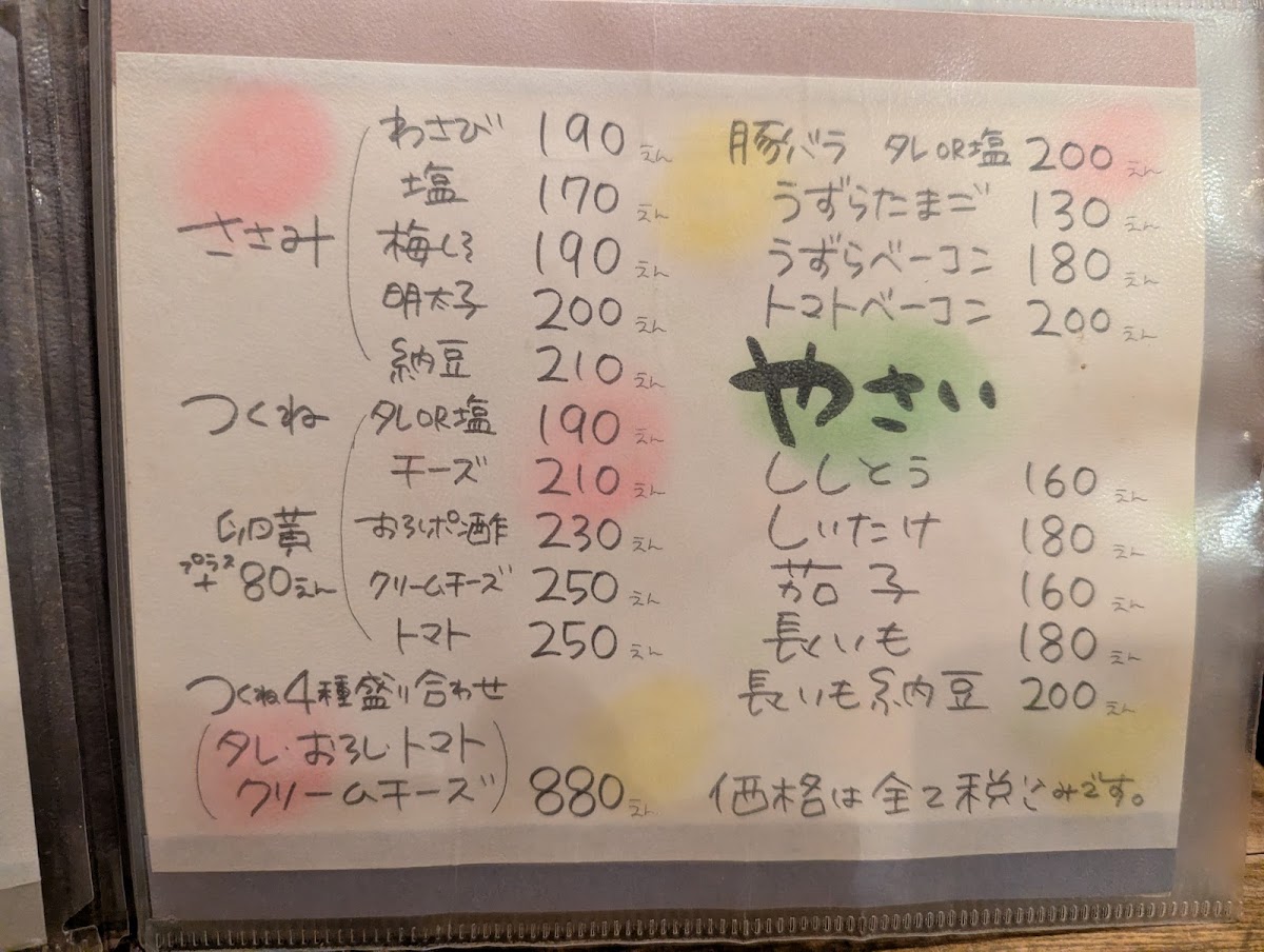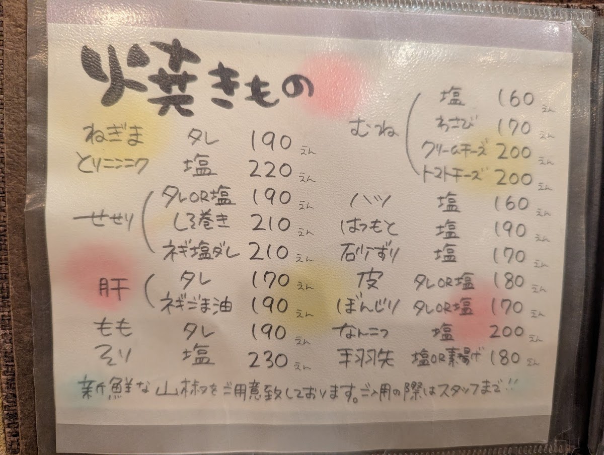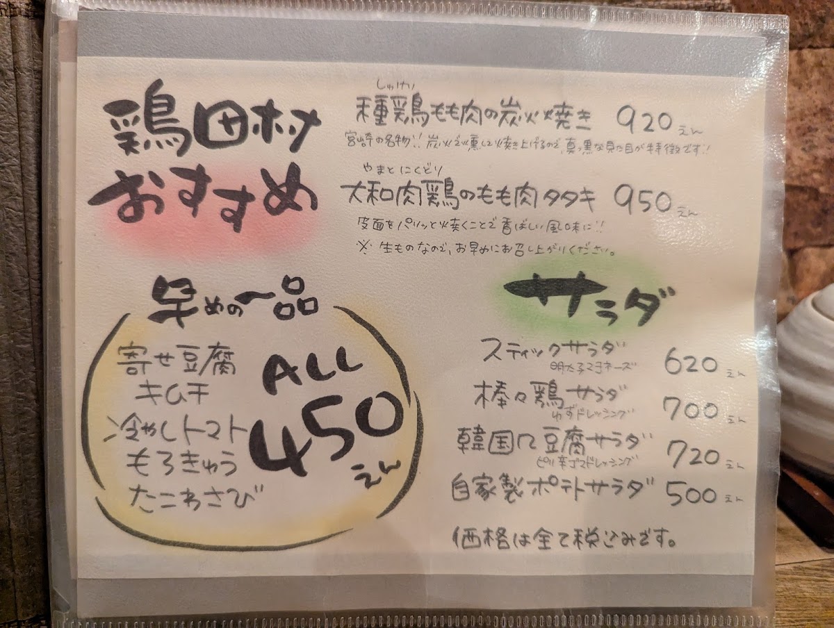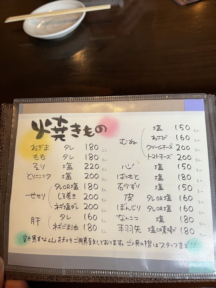 The menu at Tori Tamura in Nara offers a delightful mix of traditional Japanese dishes, with each item expertly crafted to showcase the best of Japanese flavors. A must-try dish is the 丸腸ホルモン串, a savory grilled offal skewer that packs a punch of umami. For those seeking something lighter yet flavorful, the Duck Tataki stands out with its tender, seared duck served in a delicate ponzu sauce.